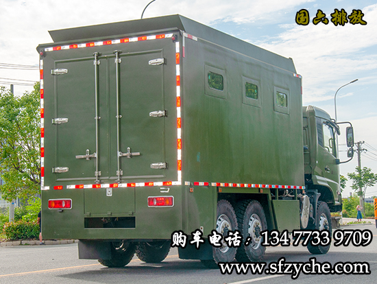國六東風(fēng)天錦大型野戰(zhàn)自行式炊事車下線了,東風(fēng)6驅(qū)森林消防飲食保障車_六驅(qū)森林消防炊事車_撲火隊(duì)專用餐車是森林消防隊(duì)員野外執(zhí)行森林火災(zāi)救險(xiǎn)任務(wù)中,為提高后勤保障能力,改善野外生存條件而研制的一種新型自行式炊事車,特別適應(yīng)快應(yīng)急消防任務(wù)。采用東風(fēng)軍用二類汽車底盤改裝而成的后勤飲食保障裝備,該車機(jī)動(dòng)性能好,專業(yè)性強(qiáng),自動(dòng)化程度高,自然環(huán)境適應(yīng)性強(qiáng),并能在駐車和行車時(shí)進(jìn)行炊事作業(yè),可保障執(zhí)行野外任務(wù)部隊(duì)的飲食和飲水供應(yīng).備注:據(jù)用戶需求,整車對(duì)底盤進(jìn)行改裝,設(shè)有8-13Kw駐車自發(fā)電系統(tǒng),1.5Kw行車發(fā)電系統(tǒng),以及配電系統(tǒng),主副食控制系統(tǒng),作業(yè)監(jiān)控系統(tǒng),水路系統(tǒng),油路系統(tǒng), 附件及工具。車廂內(nèi)可安裝主食灶、副食灶、和面機(jī)、切菜機(jī)、冷凍儲(chǔ)物柜、排油煙機(jī)、儲(chǔ)物吊柜等炊事設(shè)備。