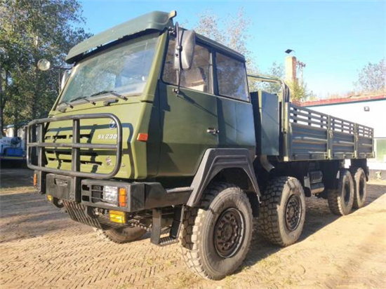 陜汽SX2300型8*8驅(qū)動越野汽車是陜西汽車集團有限責任公司為適應國防現(xiàn)代化的發(fā)展需要,結(jié)合我軍使用要求及國際軍車的發(fā)展趨勢新研制開發(fā)的越野汽車。該車主要編配用途是:牽引質(zhì)量為12噸的武器裝備;運載質(zhì)量15噸的武器裝備;為各兵種提供專用配套的汽車底盤;作為摩托化部隊及各兵種的越野或牽引車等。