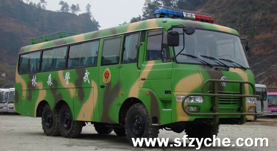 東風六驅(qū)越野客車采用康明斯160馬力發(fā)動機,東風5擋變速箱,整車長8.4米,寬2.35米,高2930米,采用東風EQ6840東風特汽越野車專用底盤,最多座位數(shù)30座,采用11R18大花紋越野輪胎,整車迷彩色,選裝空調(diào)暖風系統(tǒng)。