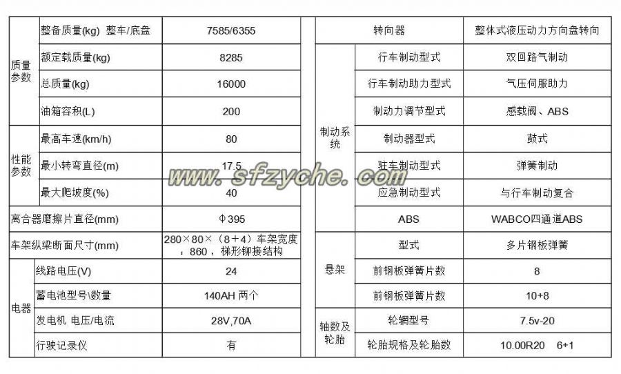 前橋額定載荷 6000KG 后橋額定載荷 10000KG