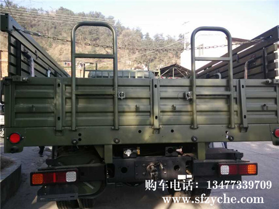東風(fēng)國五天錦EQ1120GA2型運兵車,4×2驅(qū)動,D530平頭一排半平頂駕駛室,,軸距3800mm,康明斯ISD245 50國五排放245馬力,6.7升發(fā)動機(jī),八擋變速箱,帶電加熱(預(yù)熱塞)冷起動裝置,全鋼全鋼 主油箱160L,80L副油箱,Φ395mm推式膜片彈簧離合器,東風(fēng) 4.5噸前橋,9噸后橋,主減速比5.286,車架斷面250×80×(7+4)mm,鋼板彈簧片數(shù)7/9+6,9.00R20鋼絲胎,電動玻璃升降器,中控門鎖,通道式儀表板,帶空調(diào),車廂內(nèi)部尺寸為4950x22325x600mm鐵木混合結(jié)構(gòu),邊板帶坐凳,板材采用國標(biāo)鋼材,邊板1.2mm,底板為3mm的花紋鋼板,車廂底橫梁用槽鋼加固,車廂縱副梁全槽鋼結(jié)構(gòu),能滿足客戶運輸重型貨物,適應(yīng)部隊野外使用及冰雪路面行駛要求。全面繼承東風(fēng)40多年軍車越野車制造經(jīng)驗,動力總成匹配合理,生產(chǎn)技術(shù)成熟穩(wěn)定,整車車輛全面通過軍檢。